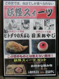 | ← あるお店の前にあった貼り紙 ヒトダマの天ぷらって どんなん? 時間がなくて確認出来ず。残念! どのお店も”鬼太郎商品”の売り上げで 細々と暮らして行こうって感じだった。 普通の商店街としては、もう成り立たないのかも。 お店の数からすると 他のお店とは違った目玉商品を置かないと 売り上げは上がらないだろうな。 貧乏旅のtopへ戻る おまけ |